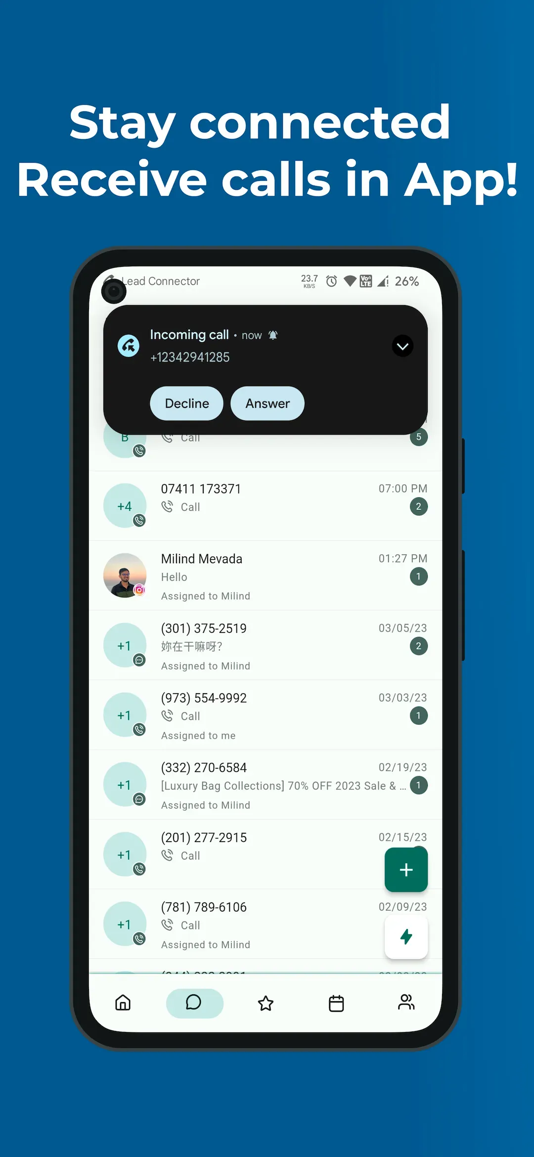 Calls, texts, website chats, emails and social media DMs all sync into a single inbox, making it very easy to respond to all your channels with a few taps